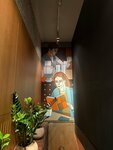 Время посещения. 27.12.2025. Вечером оказалась полная посадка, однако менеджер все же смогла найти свободный столик. Сделала это не без усилий, но очень тактично обращалась с ожидающими гостями и смогла разрядить обстановку. В помещении полумрак, поэтому интерьер кроме легендарной фрески не разобрать. На небольших столиках приборы, чайная свеча. Столики очень близко, видимо популярность столь высокая, что посадочные места пришлось расставлять в ущерб комфорту. Меню это два несколько помятых листа тонкой крафтовой бумаги, список общирный и разнообразный, разбит на понятные и удобные категории. Но шрифт не читабельный. Чтобы разобраться текст необходимо подсвечивать фонариком, что вызывает дискомфорт на пустом месте. Сезонная тарталетка с крабом-тончайшая хрустящая основа, краб не забитый соусами и кубики свежего яблока, свежо, легко, вкусно. Калифорния с крабом-хороший рис, сыра не много, краба достаточно, вкусно. Тартар из говядины. Подается на подсушенном сером хлебе. Чувствуются каперсы, горчица, проступает несколько излишняя кислота, но в целом не плохо. Гребешки с картофельным пюре и белыми грибами. Оказалось удивительно гармоничное сочетание. Крупные кусочки мягкого белого гриба великолепно сочетались с упругими гребешками с нежнейшим пюре в гармонии с насыщенным ароматным соусом. Морковный торт с вишней-воздушные лёгкие коржи с понятной структурой моркови, приятная хрусткость орехов и взбитый кисло-сладкий крем, который оказался совсем не жирным. И все это великолепие с красивой горкой вишни сохранившей упругость и приятную кислоту. Вкусно. Фирменные коктейли сбалансированные, не приторные. Сервис отличный, посуду убирали моментально, порядок подачи блюд уточнили и смогли соблюсти. Обратную связь уточнили. Итог: Интерьер: 3/5 Атмосфера: 1/5 Еда: 4/5 Сервис: 4/5