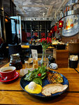 Нашел это место по результатам поиска лучших завтраков в Москве. Оценки ниже: Интерьер 4/5 Заполненность зала в будний день в 9 утра: 4/5 (немного людей) Сервис: 3/5 (два официанта - молодые милые люди - маловато для зала, плюс не хватает опыта и выучки, медленно) Кухня: 3/5 (каша обычная, брускетта с лососем из хлеба с такой корочкой, что приходится тратить уйму времени на её разрезание, неудобно и невкусно, меняйте этот хлеб) Напитки: 5/5 Общая оценка: 3+/5. При желании владельца ее легко поднять)