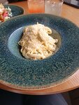 Ресторанчик находится в жилом комплексе Ты + я. Часто ходили мимо и видели, что всегда есть народ внутри. Наконец-то мы зашли в это прекрасное место. Внутри довольно уютно. Персонал прям 🔥. Большой респект тому кто подбирал такую команду. Все вежливо, с улыбкой и это прям очень круто и убирает небольшие прорези в незнании коктейлей, например. Салат с хрустящим баклажанами сулугуни(690 р)- прекрасен. Спагетти тоже хороши. Единственное, что принесли и салат( а он теплый) и пасту одновременно почти. Пришлось прям быстро все есть, а то все остыло бы. Но вот это все не портит впечатление. Коктейли неплохие(390 и выше). Вернемся обязательно еще). Порции, кстати, большие.