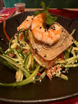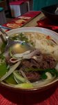 Такое ощущение, что владельцы и повар вообще не имеют представления об паназиатской кухне. Фо бо - ингредиенты правильные, исполнение никакое: вместо бульона вода, даже не куриный бульон из пустого, но жирного бройлера, про говяжий бульон даже речи нет, зелени очень мало. Том ям - слабый намек на знаменитый суп. Добавили грибы шиитаки, но убили весь их вкус просто громадным количеством шампиньонов. Ни галангала, ни лемонграса, ни имбиря в супе нет, креветки и те задавлены шампиньонами. Заявленная стеклянная лапша с морепродуктами по факту оказалась обычной рисовой, она была пустой, без соуса, а стружка тунца смотрелась эффектно, но вообще не сочеталась с итак безвкусным блюдом. Рис с говядиной - соус неплохой, говядина жесткая. Единственное, что было позитивным: девушка-официантка очень старалась