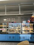 Очень богатый ассортимент, приветливые и вежливые сотрудники, знают свою работу и всегда могут подсказать с выбором или составом, радует количество предложенных напитков. Взяли сендвичи и холодные напитки, все очень понравилось, вкусно, освежающее и главное по адекватной цене. Десерты взяли с собой, съели по пути до дома, ибо слишком вкусно они выглядели. Хорошее место расположения, всегда можно заехать по пути и отдохнуть.