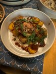 Первое знакомство началось по случайности(была самая быстрая доставка на мой адрес) с доставки года три назад, было вкусно. И вот на новогодних праздниках по приезду заскочили пообедать/поужинать 😄Вкусные супы и закуски, однозначно, салаты тоже порадовали - большие порции, качественные продукты, муж брал горячее, сказал что мясо нежное и тает во рту, но сама подача блюда в лепешке неудобна(но это, конечно, субъективно. Место очень уютное и необычное, мне как любителю вселенной Толкина однозначно зашло 🙂Стилистика дома Бильбо выдержана, такая кроличья нора с милыми деталями с отсылками к трилогиям Властелин колец и Хоббит. Есть сезонное меню, очень интересное, глазами всё бы съела, поэтому с собой заказала салат с хурмой, грушей и сыром, который в спешке сборов, конечно, забыла! Обязательно хотелось бы посетить это место ещё раз. Рекомендую)