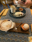 Очень уютное место. Хочется постоянно рассматривать интерьер. Удобные стулья с мягкими подушечками, но столы на четверых немного маловаты. Меню разнообразное с интересными названиями. Брала эльфийский горшочек с курицей, яблочный штрудель и дабл раф. Мне было вкусно. Наелась от души. Штрудель небольшой, но подаётся с шариком шоколадного мороженого и ванильным соусом. Друзья заказывали салаты, брускету, пасту подношение эльфам и чай. Остались довольны. Обязательно вернёмся ещё)