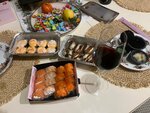 Брали сет. Не все роллы вкусные. С роллами не подают имбирь и васаби, только за отдельную плату. Палочки крашеные в тёмный цвет, зачем-то. Даже на руке краска осталась.