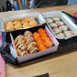 Делали заказ на самовывоз. Удобное приложение, есть программа лояльности (скидка на первый заказ, "пригласи друга и др.). Заказ был готов вовремя даже чуть пораньше, аккуратно и заботливо упакован. Сами суши/ролы очень вкусные, свежие, большие по размеру. Обязательно будем заказывать еще. Кафе уютное, чисто, атмосферно. Сотрудники доброжелательные, вежливые.