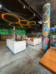 Просторное заведение, есть 2 больших зала, интересный дизайн, уютно, вежливый и приветливый персонал, Разнообразное меню, вкусная еда. Хорошая атмосфера - для любых встреч и компаний. Нам все понравилось!