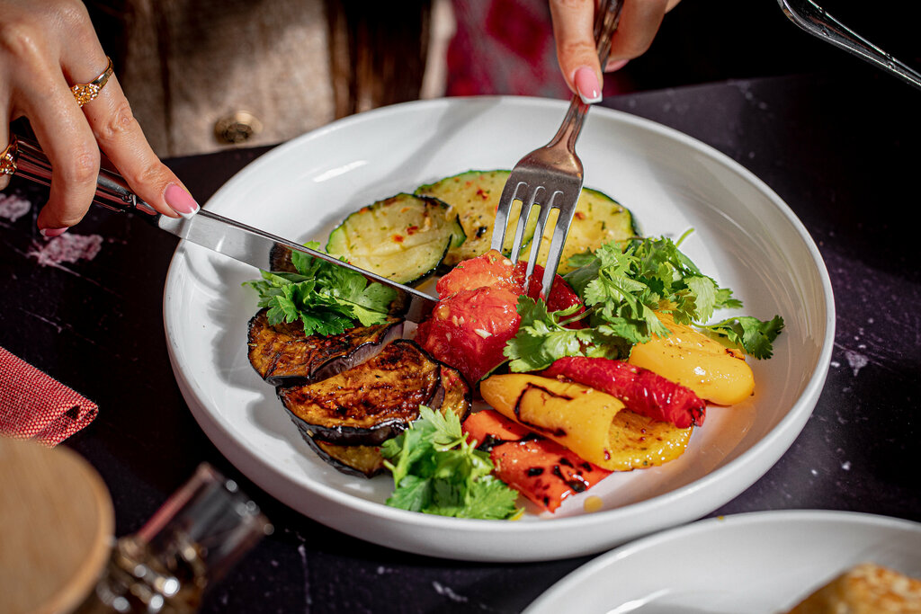 Были на втором этаже писец замёрзли, кондёры шпарят. Само заведение из трёх этажей. Первый более симпатичный уютный как кафе, второй как банкетный зал и и на нем же проходят караоке вечера и вероятно танцы по пятницам и субботам, третий этаж с кальянной. Обслуживание хорошее понравилось, по еде средне оценю. Брал семечки бараньи что то было 1/3 была не дожарена и сыровато, остальное норм, но остывало мгновенно из-за кондёров, брал салат с буратта сыром и розовыми помидорами очень средне без вкуса, не хватает сладости. Для такого салата помидоры должны быть сладкими , потому что Буратта была пресной. Брал плов понравился. Лимонады вкусные но в графине больше льда чем самого лимонада, вкусные лепёшки. Коктейли понравились. Из сладкого чизкейк баскский хорош, но должен быть плотнее, а не как запеканка, птичье молоко вкусно, торт Павлова, Бизе ощущается сахар который недовзбили до конца с белком. Выглядит красиво, но увы и ах. В целом норм, атмосферу сами себе создавали, но по кухне как по мне уровень необходимо поднимать. И ещё из странного, не знаю на сколько это правомерно но по счёту нас попросили ещё заплатить отдельно 10% от счёта официанту сам официант. Мы не спорили, но вообще по мне это странно.