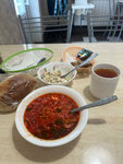 Забежал сегодня , в это чудесное заведение, с целью-пообедать за 10 минут . У кассы делая заказ, спросил что нибудь из «готового» и побыстрей. Ответ был таков-«..у нас время ожидания не более 5 минут». Каково было мое удивление , когда через 2 минуты у меня на столе , стояла тарелка борща , крабовый салат , хлеб и кружка с чаем! Продукты конечно из недорогих , но свежие . Блюда не домашние , но съедобные. И стоимость как в столовой. Вообщем если вы не искушенный «кутила», вам сюда. Цена-качество! 👍🏼во