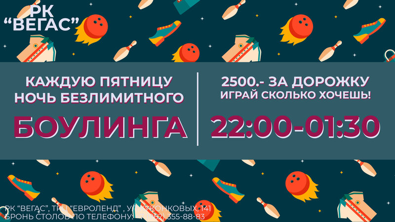 Пятничный ночной безлимит на боулинг!