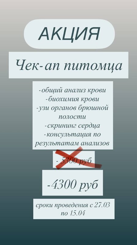 Diagnostics of animal diseases:general clinical blood test, clinical analysis of urine, clinical fecal analysis, x-rays for animals, animal ultrasound, echocardiography