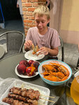 Отдыхали с 25.06 по 1.07.24 три семьи. В целом очень понравилось, опишу плюсы чуть ниже. А сначало парочку минусов. Но это то, чего мне лично не хватало. Так как море было +16 и цвело, очень не хватало бассейна. Но к сожалению территория не очень большая и места нет для него. Ещё мне не хватало,как кормящей маме чайника в номере. Приходилось ночью ходить на общую кухню и пить чай. А теперь плюсы..... Встретили нас с улыбкой. Наташа и Дима Вам привет с Рязани. Территория небольшая,но уютная,чистая, много цветов .Есть столики, качели, телевизор,батут. Вечером с большим удовольствием ужинали на свежем воздухе большой компанией. Номер нам достался на втором этаже. Все чистенько, кондиционер мощный. Даже редко пользовались им. В номере есть мини холодильник. Полотенца на каждого человека. На этаже была сушилка для белья и утюг. Стирка платно 200р. Общая кухня всегда была в чистоте. Возможно это ещё зависит от отдыхающих. Есть 3 больших холодильника. На каждый номер был шкафчик с посудой и дополнительно на всех ещё есть. . А самый большой плюс для меня и моего малыша,то что был стульчик для кормления и манеж для сна. Спасибо Вам огромное,что купили к нашему приезду. В шаговой доступности есть столовые, магазины, лавки с овощами ,очень вкусная рыба на шпажках. До магазина Пятёрочка минут 10 идти не спеша,до моря примерно так же.