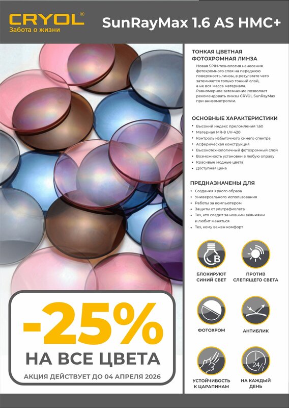 «Сезон Sun Ray Max» на складские фотохромные линзы Сryol