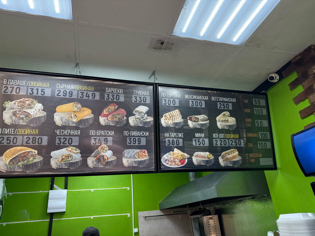 Вкус шавермы на твердые 4+ Приятный повар Недавно обновилось меню и появилось много разных шаверм Приятный интерьер Жаль нет санузла