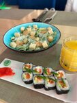 Для суши бара роллы не самые лучшие, в некоторых доставках вкуснее. Салат как-то раз принесли ужасно соленый, позвала официанта сказала, что пересолили, в ответ получила, что ничего удивительного, так и должно быть.. будто я цезарь с креветками первый раз ем. Не стала настаивать поменять, просто не стала есть, но был соленый он, будто в соус насыпали столовую ложку соли! Официанты подходят только чтобы принять заказ, больше сами не подойдут + ко всему кнопки вызова нет, звать официантов приходится криками через весь зал, потому что просто на поднятую руку никто не реагирует, тк стоят болтают с барменами. В общем пока жила в этом доме, ходила кушать туда, и каждый раз что-то да было не так. Единственное, напитки вкусные и том ям хороший всегда.