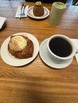 I rarely give five stars but I will here. The coffee was tasty and the pastries were fresh and nice. The place was warm and had a nice baking smell throughout the cafe The seating area was comfortable and spacious so you aren’t sitting on top of everyone The waitresses were smiling. Smiling!!! For Russia it’s immediately five star review It’s much better here than the other cafes on the Main Street, like stars coffee