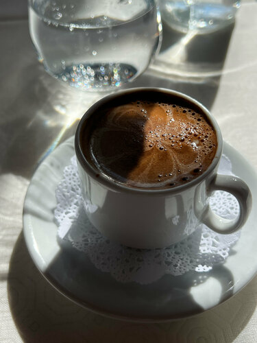 Были на 8 марта в последний раз тут. Обслуживание хорошее. Блюда вкусные и доступные. Интерьер в зимнем зале чудесный, светлый. Все чисто, туалет один и тоже чистый. Антураж завораживает. По личному мнению, тут лучшие чебуреки в Евпатории (соотношение тонкости теста и сбалансированности вкуса начинки)