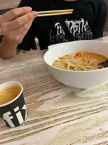 Только что открыли с дочкой это заведение) Во-первых-интерьер. Кто имеет детей-поклонников анимэ, японской и корейской культуры-смело идите сюда. Дети будут в восторге. И подростки тоже))) Меню: порции большие! Мы осилили 1 рамен на двоих и доча попробовала кимчи. Я, как бывший работник ресторанов высокой кухни восточной направленности, не по наслышке знаю, какой должен быть вкус. Докладываю: кимчи именно такой, какой и должен быть. Сервис: попросили отдельно 2 тарелочки, чтобы удобнее было вкушать рамен. Все дали. С улыбкой, доброжелательно. Отвечали на наши вопросы по меню. Сейчас с дочкой спешим в нашу любимую стоматологию НОВИВ, а на обратном пути снова заглянем в этот ресторанчик. Тем более, что предложили программу лояльности и там что-то вернут бонусами за заказ. Однозначно рекомендую! Первый впечатление-самое положительное.