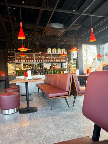 Плюсы , вкусные бургеры и лимонады фирменные . Минусы , бургер маленькие для такой цены . Очень плохо вытирают стол , жирные пятна которые пришлось вытирать салфетками влажным. Причем пятна видны на всех столах . Принесли один набор перчаток для бургера , мы были вместе с супругом и пришлось делить по одной перчатке .