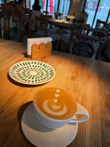 Очень приятное место! Были в обеденные время в субботу) супер ненавязчивое обслуживание. Вкусные позиции из меню! Съели абсолютно все, что подали! Обалденный кофе. Рекомендую. Чек выше среднего)