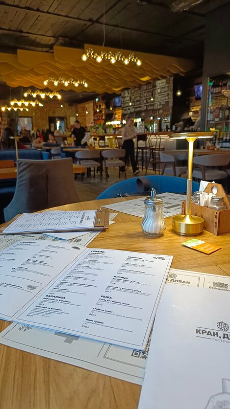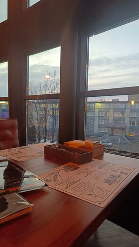 Запах санузла непередаваемый за несколько метров. Невозможно было сидеть, тем более - есть. С детьми никого не было. Меню без фото и нас не впечатлило. Цены ресторанные, ожидаемые. Зал без перегородок и кабинок, довольно шумно, нет уединения. Стулья низко, "проваливаешься". Раздеваться, вешая одежду на переполненные вешалки. Обслуживание своевременное, спасибо