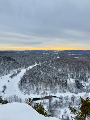 Ходили по маршруту выходного дня в январе. Добирались из Екатеринбурга. Планировали доехать до моста, но дорогу замело. Маршрут получился около 19 км в обе стороны, от моста было бы км 13. До горы дорога хорошая, наезжена снегокатом. Подъем крутой. С горы открывается красивый вид, рекомендую!