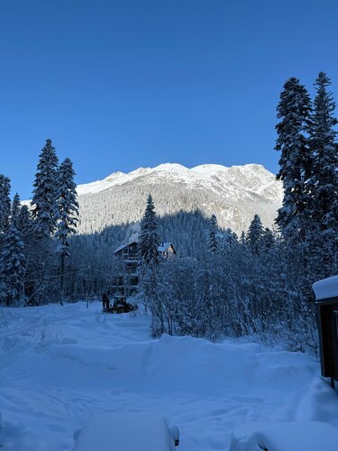 Отдыхали тут не в первый раз. В этом году встретили новый год всей семьей. Все кто был впервые в полном восторге. Чисто,уютно,гостиприимно. Про шикарные виды даже говорить не стоит. Уникальность этого места в том,что находясь в двух шагах от всей цивилизации Домбая,ты останешься в уединении со своей семьёй и природой. В этом году сделали костровую с качелями😍 Ещё наши дети раскатали горку возле домов(так что берите с собой свои ватрушки обязательно) Тут у вас никогда не будет проблем с парковкой,туалетом и горячей водой (поверьте сравнить нам есть с чем) Хозяин турбазы очень радушный и гостепримный человек. Желаем вам процветания и благополучия🫶