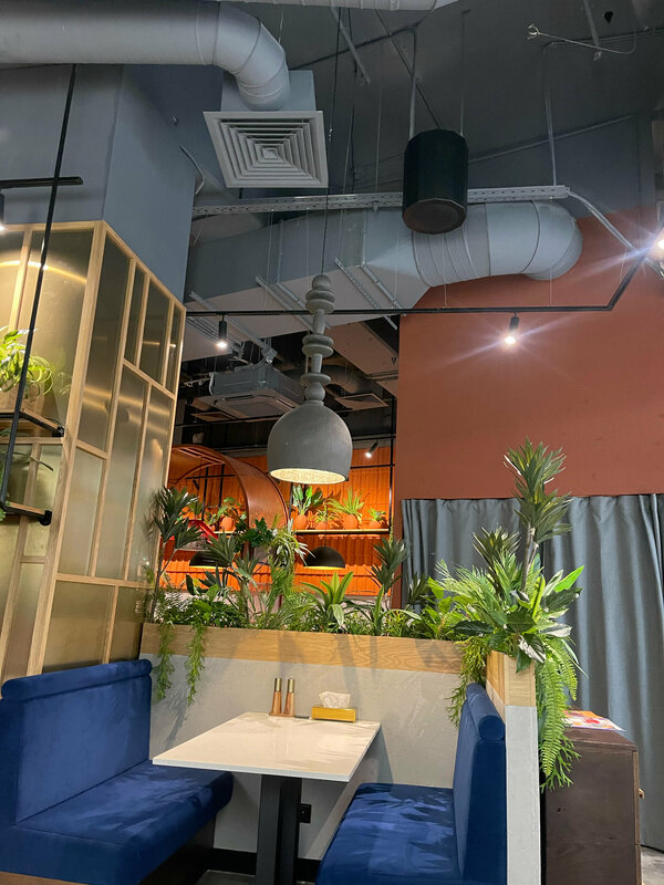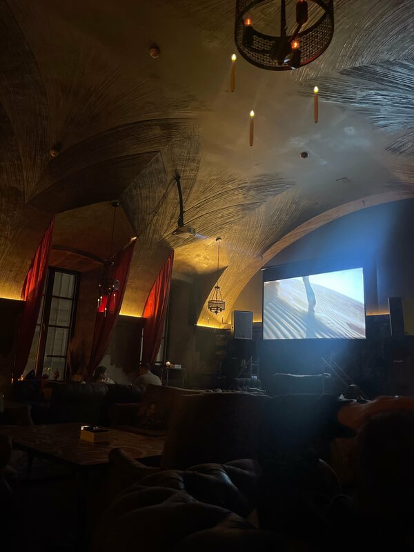 Дизайн и атмосфера фантастические. Обслуживание очень хорошее и внимательное. У них отличный выбор различных сортов чая. Выбор кальянов также довольно широк. Единственным минусом было бы завышение цен на алкоголь.