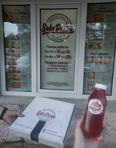 Заказываем здесь пиццу практически с открытия предприятия, успели посоветовать уже друзьям и коллегам, брали пиццу на мероприятия, всем очень понравилось. Персонал всегда вежливый, работают быстро, как на кухне, так и на доставке. Кроме вкуснейшей римской пиццы, имеются морсы, вкус сбалансированный, не слишком кисло, не слишком сладко, утоляют жажду и всегда вкусно. Попробовав Solo однажды - захочется возвращаться вновь и вновь.
