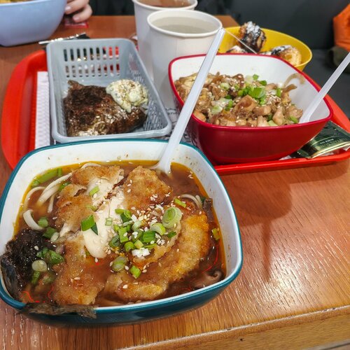Подруга получила флаер и предложила мне сходить в это заведение. Я приехала с другого города, поэтому о данной сети ничего не слышала. Смотря, уже сейчас, комментарии про отравления, хочется плакать, ведь попала в данную ситуацию. Были на Елизаровской. Взяли 2 набора, подруга лапшу / онигири / чай, я же взяла удон / оякодон / чай + 6 кокосовых шариков. Суп понравился, хотя временами был привкус уксуса, оякодон же переправлен соусом, было тяжело его есть, слишком солено и луково. Доедать не стала, поблагодарила персонал, т.к впечатление от супа за такую цену порадовало, но дальше уже было не радостно. При прогулке начал колоть живот, точечно, в разных местах, появилась тяжесть, словно весь груз дали на живот и ниже. Временами появлялось чувство тошноты, которое на грани сдерживания. Буквально за несколько часов появилась слабость, а по приезду домой уже была температура 39. Сегодня же озноб и слабость. Здоровье не слабое, как и желудок, тем более, из-за поездки к врачу, перед посещением заведения ничего не ела, как и после, потому что все вызвало отвращение. Думала приехать еще, но после такого опыта и других отзывов о живности, волосах и диарее, теперь хочется только обходить стороной, а ещё лучше направить санэпидемстанцию для проверки.