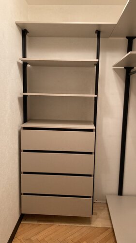 Гардеробная получилась прекрасная. Соотношение цена/качество- отличное. Спасибо замерщику Никите и сборщику Алексею. Заказывала гардеробную по рееомендации друзей и ни чуть не пожалела.