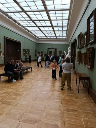 Заранее планировали посещение музея, купили билеты за месяц. Попали сюда в первый раз на основную экспозицию в новогодние праздники. Что понравилось - увидели великолепные шедевры мировой живописи, с которыми были знакомы только по школьным учебникам. Не понравилось следующее: организация посещения выставки основной экспозиции и отношение к посетителям музея. Начну с гардеробной. Нужно было отстоять не менее получаса, чтобы просто сдать верхнюю одежду. Длинные очереди с нервными людьми, которые не понимали, что происходит, не понимали почему не хватает номерков с вешалок, судя по всему не хватало и гардеробщиков. Я понимаю, что много народу, но в Русском музее посетителей будет много всегда ! Надо что то менять! Экскурсию заказать тяжело. Аудио гид отсутствует! Правда?! В наше время, когда у каждого есть смартфон? Информационные Q-коду у экспонатов просто не работали. Возможно для прослушивания нужен был VPN?! Еще нюанс. Для того, чтобы разглядеть многие картины, нужно кругами ходить, чтобы выбрать ракурс, так как освещение такое, что бликует просто невозможно. Это раздражает. Не буду желать вам побольше посетителей, так как судя по всему вы и с текущим потоком гостей не справляетесь. Своим отзывом я не хотел кого то обидеть. Но если честно мне самому обидно за музей, который имеет такой огромный фонд шедевров мировой живописи и не может комфортно организовать посещение гостей. Надеюсь посетить ещё раз этот замечательный музей и не разочароваться.