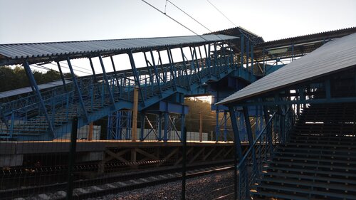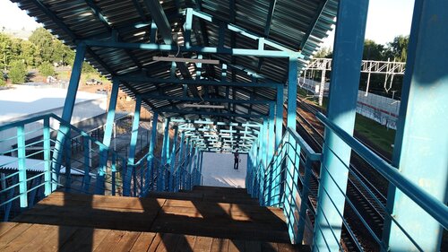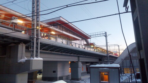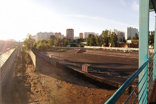 Пока здесь временная платформа, но со временем появится и постоянная. Людей на ней пока мало, но лично мне через нее удобнее и ближе, чем через Железнодорожный. Будем ждать ее окончательного варианта и быстрой (насколько это возможно) перестройки платформы Железнодорожный.