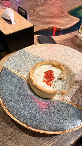Пришли 8 марта после заселения в апартаменты по соседству. Девушек всех угощали игристым. Это было приятно. Очень вкусно поели. Барабулька шикарная! Киш - выше всяких похвал! Единственное, что не очень понравилось - музыка 😌