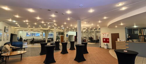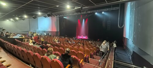 Концертная площадка, находящаяся в 10 минутах ходьбы от выхода №3 станции метро Комсомольская, или же, что по пути, в 5 минутах от станции "Площадь трех вокзалов" диаметров D2 и D4. Видео прохода приложу, там будет понятно, куда идти =). Расположена в том же здании, что и Чайхона, а именно эту вывеску вы увидите, скорее всего, ранее, чем МОСКОНЦЕРТ =). Пройдя внуть, попадете в большой холл, в котором расположены гардероб, буфет со столиками-лавочками и проходы к туалетам (в цокольный этаж) и зрительный зал. Зал среднего размера, рассадка комфортная - амфитеатром, поэтому все видно должно быть хорошо с любого места, за исключением, пожалуй боковых, непосредственно у сцены. Много писали про "инновацционный" гардероб, веренее про нарекания к его работе. У меня подобных сложностей не возникло, наверно, женщины-гардереобщицы отимизировали свою работу: одна на аккумулировании номерков в оптимальном порядке для выдачи и две еще, непосредственно на выдаче. Буфет - обычный театральный: недешовые кофе/чай/алко, пироженки/бутеброды. Бармен - обходительный и остроумный. Был же я на удивительной постановке Ёми 13 марта 2026 года. Действие завхватывет и завораживает причудливоствостью сочетания, прежде всего, пластики танцоров, необычности и гуттаперчивости их движений, при взгляде на которые мои позвоночник, спина вообще и конечности не раз сочувственно откликались =). Также, отличные визуальные эффекты, котрые значительно способствуют погружению в мифическую реальность действия. Причем, основные танцоры здесь без классического танцевального образования, как сказала постановщица - уличные самородки (фри-стай, хип и вот это вот все). Все действие смотртся на одном дыхании. Если у вас появится возможность посетить его, идите не раздумывая!