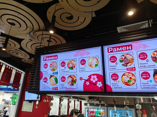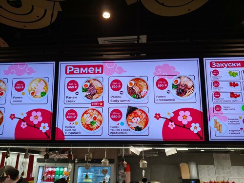 Берите блюда с пометкой "HIT" - не прогадаете. Побывал 2 раза, первый раз брали с супругой Рамен стэйк (очень вкусно, но мясо немного жестковато) и Рамен сливочный с креветками (ну ооочень вкусно). Второй раз брали том-ям (отличный) и Рамен бифу шичу (разочаровал - думал, тут мясо помягче будет, но его тут раза в 4 меньше, чем в "стейк" и сам рамен не вкусный (или повар другой был). Но все равно 5 звезд - такие аутентичные заведения Москве нужны! P.S. Цены и меню смотрите на фото. И напитки попробуйте в больших стаканах - они вкусные!