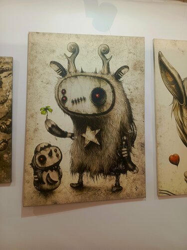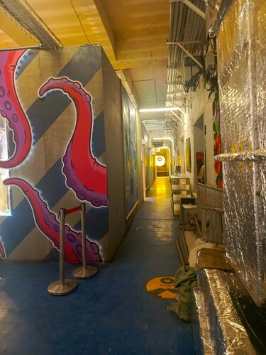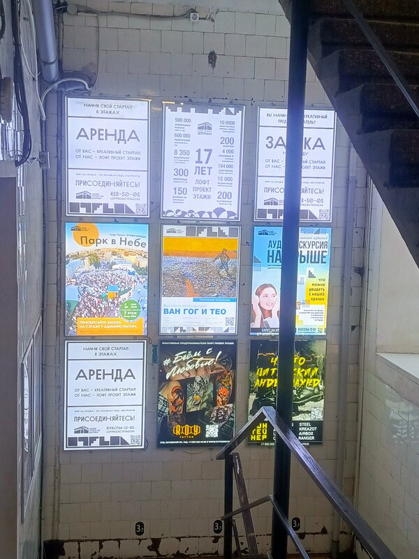 Место удивительное. Можно увидеть чем живёт поколение зумеров - оригинально, нестандартно и желание превратить в искусство или проявить в творчестве все, что попадается на глаза. Оригинальные магазинчики, фуд зоны, игровая, но во всем ощущение " и так сойдёт" Привлекло в Этажи выставочное пространство с выставками репродукций Ван Гога и Малевича. Интересная подача - у каждой репродукции можно прочитать историю картины и некоторые факты из жизни художника. Выставки платные 600 рублей за обе оплата нал или через сайт с 10%комиссией, но есть и зал со свободным входом с картинами местных художников. Одним словом, хочется чего-то нестандартного, но без экстрима, вам туда.