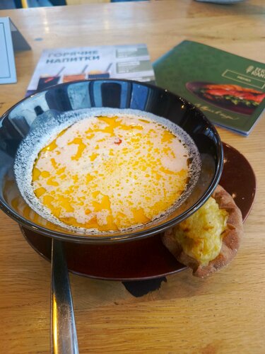 Кафе в глубине дворов Лиговского проспекта, 50. Расслабленная обстановка без всякого пафоса, все абсолютно просто, словно студенческая столовая, но это кафе. Есть супчик дня - выручает, когда времени мало, а кушать хочется, но он далеко не веганский - с колбасками. Блюда готовят буквально для каждой подачи, поэтому придется подождать, порции приличные. Ценник тоже приличный, но если пришёл, то уйдёшь точно сытым. Зал уставлен зеленью много растений. Персонал тоже простой из серии свои люди, могу принести не твой заказ или например два шоколадных кекса тебе одному... Нет четкости как в сетевых рескоранах, но и никто не напрягается, поддаёшься этой атмосфере и тоже особо не заморачиваешься.