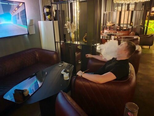 Просторное, атмосферное заведение с большим выбором попить, поесть и подымить. И все со вкусом. Одни из немногих, где в меню включены роллы. По дымовым вкусам также делают круто, все миксы нравились. Также удобно расположены и работают допоздна. Спасибо за человеческий подход! 🤝