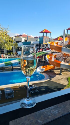 Красивый вид с балкона, на этом всё. Бассейны ледяные, особенно детский🥶 а тот что крытый - с мутной водой🤦‍♀️ я не искупалась ни разу. Питание однообразное, люди сначала сражаются за тарелки, потом в очередь за едой. Алкоголь - отврат, кроме пива, которое хотя бы похоже на пиво, больше пить нечего. Вино из пакетов даже нюхать страшно. Коктейли из самых дешёвых составляющих и яркоокрашеных красителей. Нас "комплементарно" поселили в номер "люкс" 😂 так как мы изначально ехали в другой отель, новый из этой сети, но там после природных катаклизмов отрубился свет и нас поселили в этот отель🤦‍♀️ так вот, таких номеров "люкс" я еще не видывала.. Ручка дверная с электронным замком болтается во все стороны, чтобы открыть/закрыть дверь нужно потренироваться. Держатель для полотенец на одном гвозде, по плинтусу приклеен ковер😳 все слышно что у соседей происходит. из плюсов - номер довольно просторный, 2х комнатный, в каждой комнате выход на балкон с красивым видом. Занавески практически блек аут, что тоже приятно, было комфортно спать. Хорошие матрасы, постельное, полотенца классные. Через дорогу есть магазинчик в котором можно купить нормальные напитки. Больше не планируем возвращаться сюда. И очень странно что за такой ценник люди сюда едут, хотя можно посетить вполне нормальные отели находящиеся буквально на этой же улице🤦‍♀️ но как нам сказали одни из соседей - по сравнению с Фея 3, которая за забором, этот отель прям вау😂 ну каждый выбирает для себя.