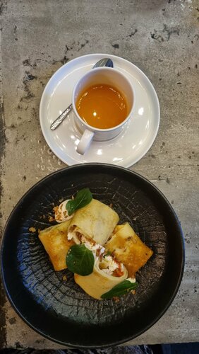 Приятный рест, два этажа, есть две вип комнаты, летняя веранда не большая. Интересный интерьер, хорошее обслуживание. Цены выше среднего, но всё очень вкусно, брали салат с индейкой, борщ, блинчики с перцами гриль и ореховой пастой, авторские чаи. Сделать бы может еще на крыше посадочные места, чтобы было видно водохранилище.