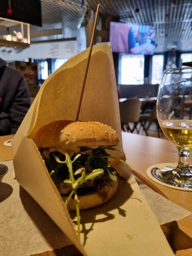 Хорошее обслуживание 👍, неплохой интерьер, но хотелось бы больше барного антуража. Пиво 🍺 неплохое, но мало выбора для бара, по еде нормально - брали бургеры, сухарики, а вот салат с баклажанами просто пропитан маслом - слишком жирно.