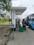 Давно стоит остановка, есть мусорка, крыша от солнца или дождя. ходят куча автобусов!