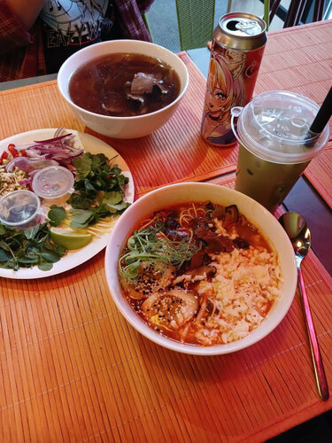 Прекрасно провели время в данном кафе азиатской кухни, все вкусно, пальчики оближешь, вкуснейший фо-бо в Краснодаре и изумительный рамен✨ Есть хороший ассортимент крафтового пива. К блюдам есть вкуснецкие бесплатные добавки, приятный обслуживающий персонал. Брала еще еду на вынос, спасибо повару за заботу, положил все по отдельности 🤍