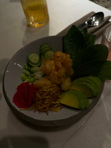 Это место заслуживает своей оценки. Сидели за барной стойкой и весь вечер наблюдали за приготовлением роллов — Идеальная санитария и чистота)) По еде: котлета из палтуса - оооочень вкусно. Поке с креветкой - вкусно, но на 4. Слишком много кляра в креветках Японская паста с креветками - отличная. Коктейли тоже хороши!
