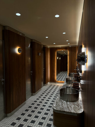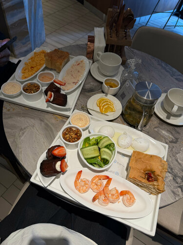 Это лучший бизнес зал по атмосфере, который я видела на вокзалах в РФ Атмосфера будто ты в соборе каком-то) Чистые, новые уборные Есть шведка, там вполне стандартный набор блюд бал на завтрак — яйца, сырники, каша, сыры, колбаса и блинчики, кексы. Чай и кофе были, вода в бутылочках. Нет душа, но умыться после дороги вполне можно) 2500 вход, но если у вас есть бесплатные проходки в бизнес залы от банков, то можно воспользоваться)