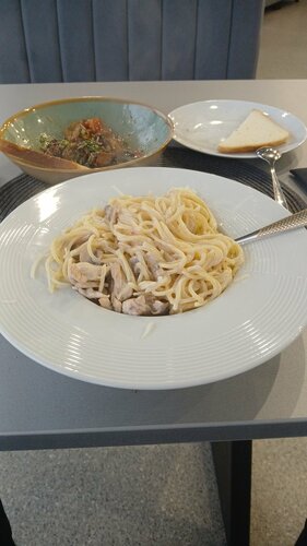 Просто обалденная баланьеза. Очень вкусно. Салат тёплый из кабачков просто вкуснотища. Обстановка приятная, кафе Панда очень красивое, чистое . Персонал вежлиаый. Хочется вернуться ещё!