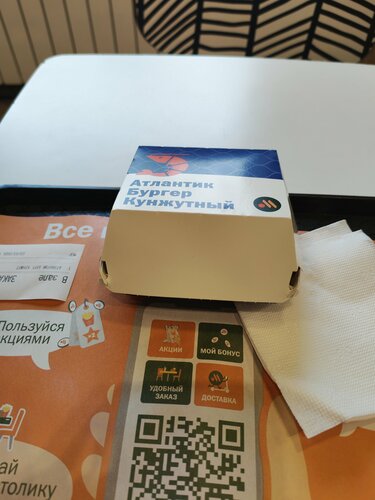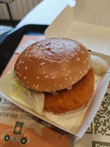 Удивительно, но мне настолько понравился этот незамысловатый филиал за годы дегустаций, что поставлю аж 3 балла с плюсом. Иным филиалам больше 2 точно не ставил. Новиный бургер Атлантик с креветочной котлетой вполне можно считать удачным и в меру вкусным. Стоимость - 320 рублей. Пространства внутри хватает, учитывая популярность места. Удивило также, что женщина, убиравшая столик, поинтересовалась, как мне Атлантик )) ... Вердикт - место вполне заслуживает право на существование)))