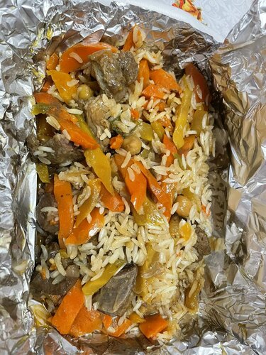 Риса почти нет, одни овощи, сильно пересолен. В салате дубки испорчена Ветчина.