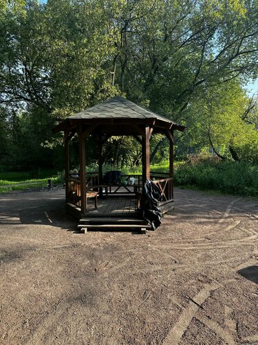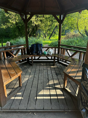 Хорошая беседка, уединенная, достаточно большая, вместит небольшую компанию. Стоит не на проходном месте, что важно.
