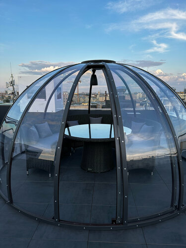 Любимый наш отель в Петербурге. Каждый год, приезжая летом в отпуск, останавливаемся в нем. Удобно, чисто, уютно. Номера, они же апарты, принадлежат не только самому отелю, но и частникам, у них арендовать выгоднее. Номера отличаются по площади и комфорту. Где-то кровать, а где-то диван, где-то есть кондиционер, а где-то нет. И номера без кондиционера в летний период и с восточной или южной стороны прогреваются адски. У семейных номеров есть балконы, в остальных же на все панорамное окно открывается лишь одна небольшая створка. В летний период много комаров, если едете более, чем на пару недель, купите москитную сетку на липучках. Стоит копейки, а спокойный сон гарантирован. В номере всегда чисто, все в скандинавском стиле (все из IKEA, даже посуда). Есть все необходимое: холодильник, стиральная машина (мини формат), телевизор с базовыми каналами, плита и вся необходимая утварь, электрический чайник. Утюг, сушилка доя белья, гладильная доска также имеются. На территории есть огромное количество фудкортов (вкус-качество не знаю, мы в таких мечтах не едим) Зато муж оценил шаурмячную тоже на территории отеля. Брал часто, говорит очень вкусная, большая. Ни разу не обосрался 😀 Ну и изюминка - это крыша отеля, куда можно прийти и поработать, и отдохнуть, и перекусить, и почитать (книги, пледы и т.п все имеется)
